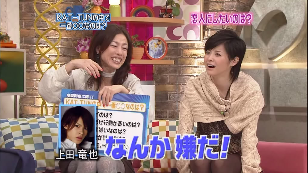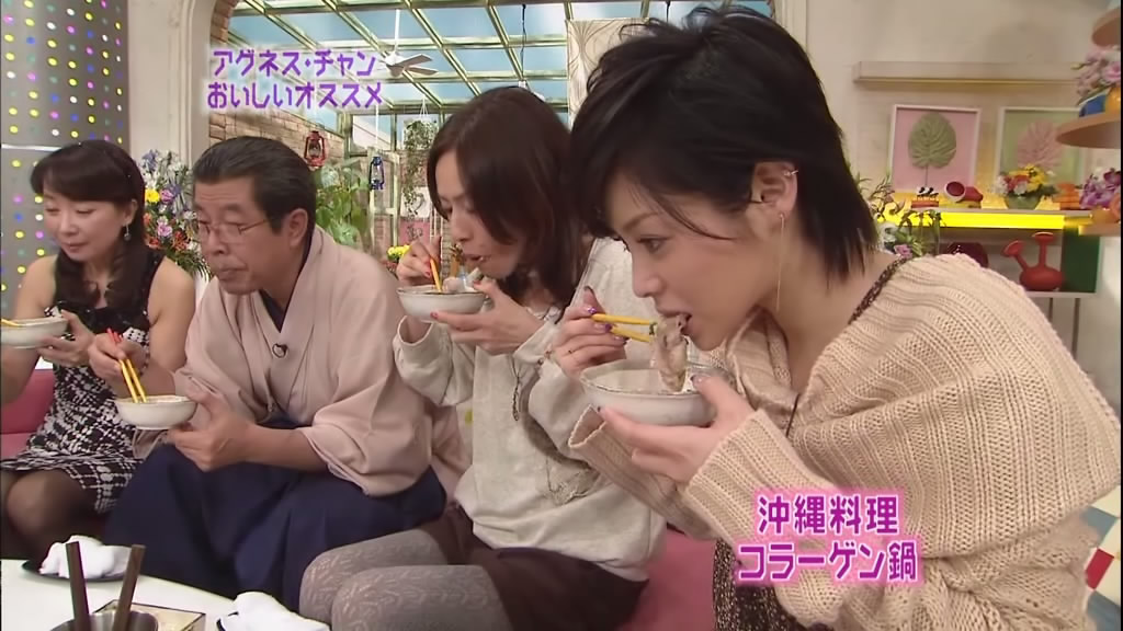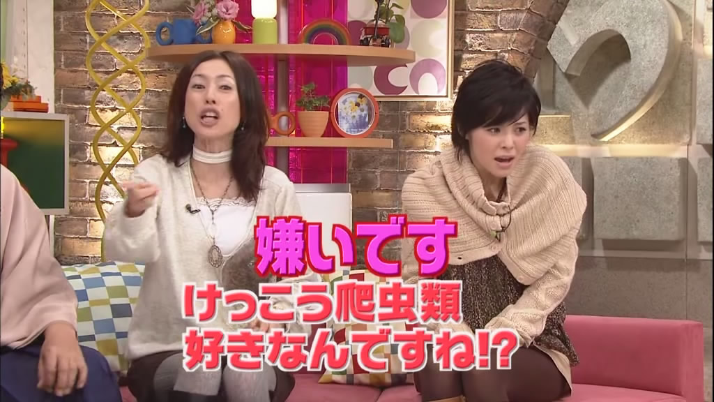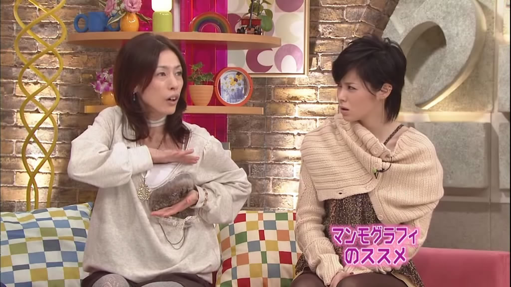 silenceglaive thought Somehow Ayaya looks like she had to hurry getting her clothes on and N4S especially liked the first one in the second row: That's a fun one! She looks so happy. Ninja-Man commented: I must say that Aya has some of the most amusing expressions I've ever seen. I'd imagine you time it just right to get the best shot of it, but still. I'm surprised your strips are used more often for comic uses. And the scary one really is scary. I've seen trannies that look better. But two people jumped in to defend her honor :-) matadesuyo8 wrote: True. Hisamoto Masami or "Machami" ain't exactly a beauty queen by any means. But she's a pretty funny comedienne, and believe it or not, probably one of the most popular female entertainers in Japan (according all of those surveys and polls they take in Japan.). Think 'Whoopi Goldberg', and Whoopi ain't exactly a beauty queen either. And Matt went on: I love Hisamoto. She certainly ain't pretty, but her lack of etiquette sometimes and her ability to make the guests feel welcome and talk is something that Aya can learn a lot from. And Aya and Hisamoto seem to get along very well.