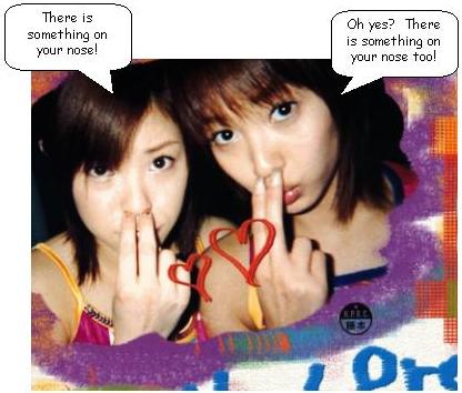Speaking of her nose: Matt asked around who know about Aya's specialty regarding her nose.....and posted a pic of her with pigtails, thinking that it was a rare one: