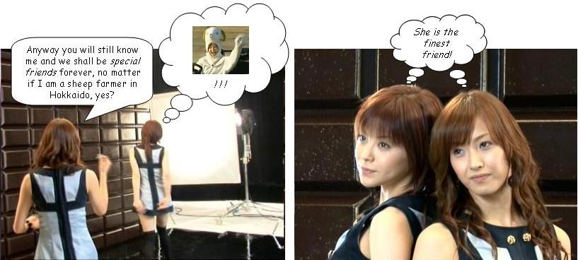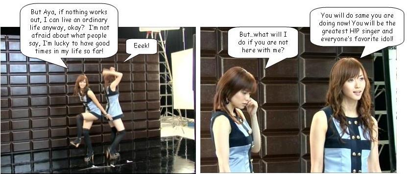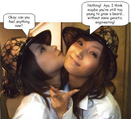 Matt thought that it somehow reminds me of the Eskimos rubbing noses... Very funny, Fumi Though I hope Aya doesn't plan on becoming the bearded lady at the carnvial sideshow should her single sales refuse to go up....